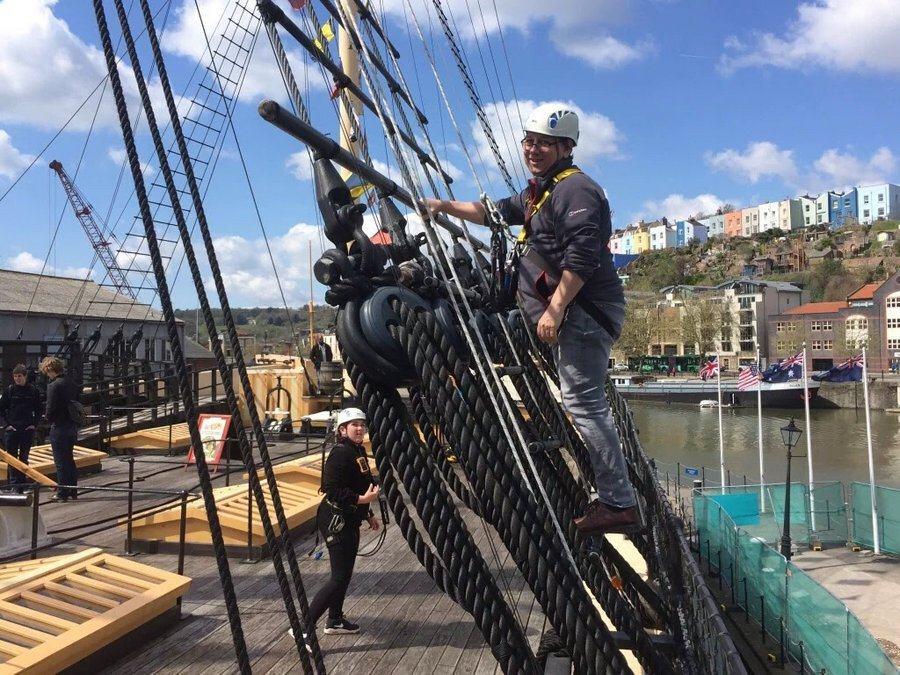 Then you are guided over the pin rail to start climbing up to the first yard where other team member supervises your transition onto the yard itself… gulp. I think I’ve got less comfortable with heights as I’ve grown older!