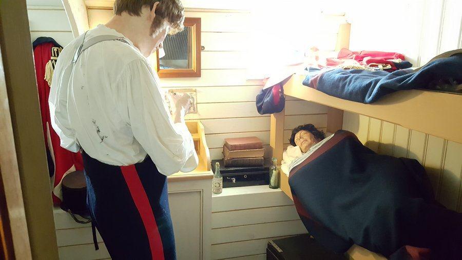 The ship is brought alive with sounds and smells, and manikins all based on documented information and stories from journals, so it feels very authentic. The sound of a cow bellowing on the upper deck, reminds you, that fresh meat had to be alive!