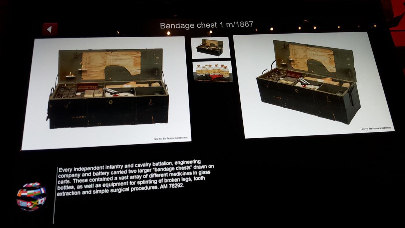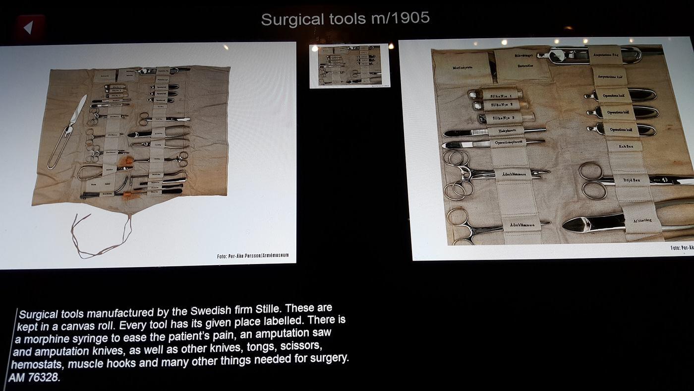 Moving into the 19th (and 20th century on the second floor) there are some interesting collections of medical corps equipment, especially surgical tools and supplies, all fastidiously organised into packs and boxes with every item labelled – the Swedes were very organised when it came to medical supplies – and all individually itemised and explained on digital touch screens for visitors.