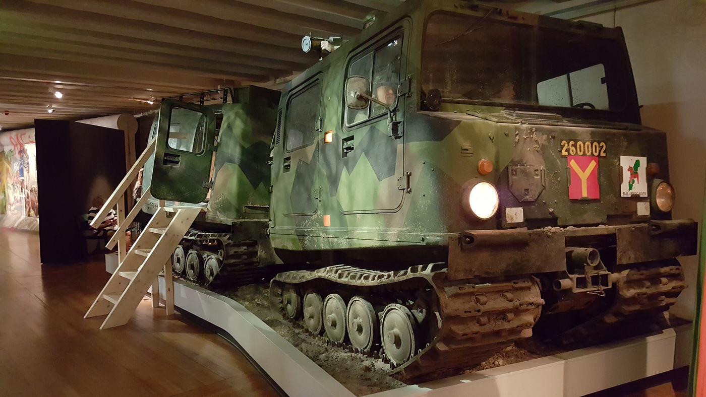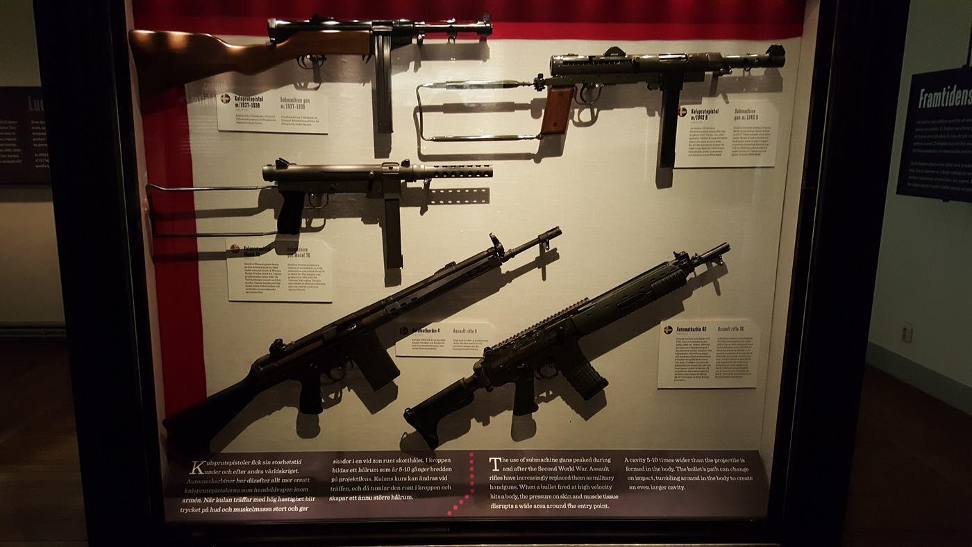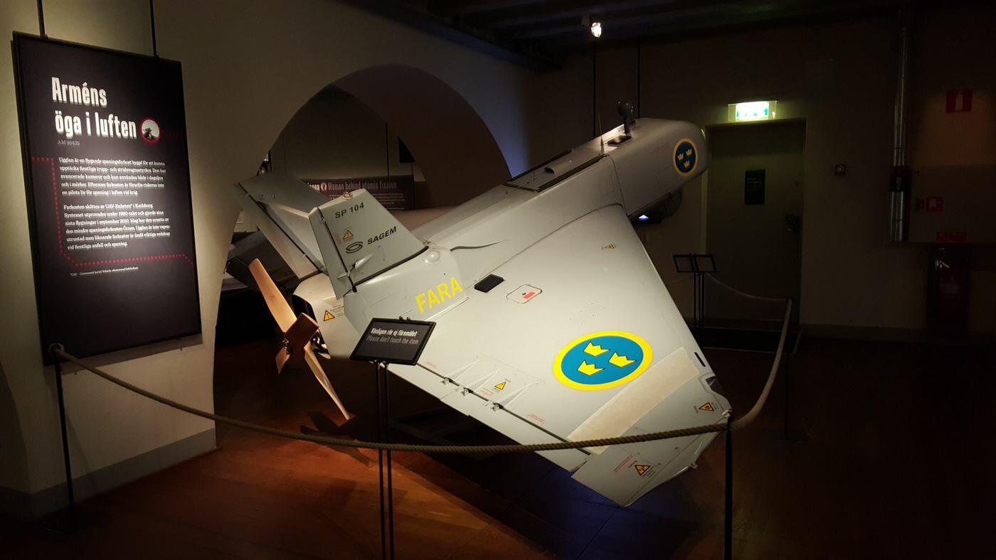 Moving into more recent times, the museum concludes with modern weapon systems like the army’s excellent articulated, tracked all-terrain vehicle, the Bandvagn 206 (thousands sold worldwide!) and an Ugglan (owl) drone. There is also a collection of gun cases featuring some well-known and some rare firearms – pistols, sub-machine guns, rifles, assault guns, and so on.