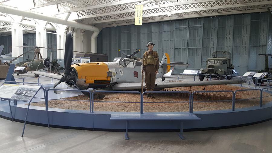 There’s also a rare RAF Cierva C-30A auto-gyro from WW2. They were used to calibrate radar stations, but the star of the hanger for me is the downed Messerschmitt bf-109E in its diorama with a sentry guarding it… just as it was in the famous photo taken just after it was shot down on 30th September 1940 near East Dean in Sussex.