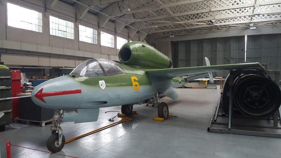 - A Heinkel 162 jet fighter, produced at the end of the war, too late to be effective. This one is nearing completion and looks splendid.
