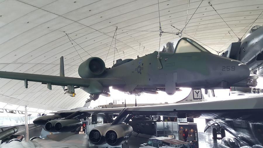 How can you not be awestruck by a giant B-52 strategic bomber, or the Lockheed SR-71 Blackhawk (one of the most elegant planes ever, leaks fuel like a colander on the ground until she starts climbing to hit mach 3.2 at 70,000ft and all the seals in her titanium hull heat & expand under the air friction and seal her up tight! This particular one set a flight altitude record of 85,069 feet (25,929m) in July 1976); or the butt-ugly A-10 Warthog (the plane that they keep having to reprieve from the scrapheap because nothing does close-support ground attack like a Warthog!); or the B-25 Mitchell bomber made famous in the Doolittle Raid on Tokyo, or the F111 famous for its raid on Col. Gaddafi in Libya? Not to mention the giant (four-engined) B-17 Flying Fortress, B-24 Liberator, and B-29 Superfortress!