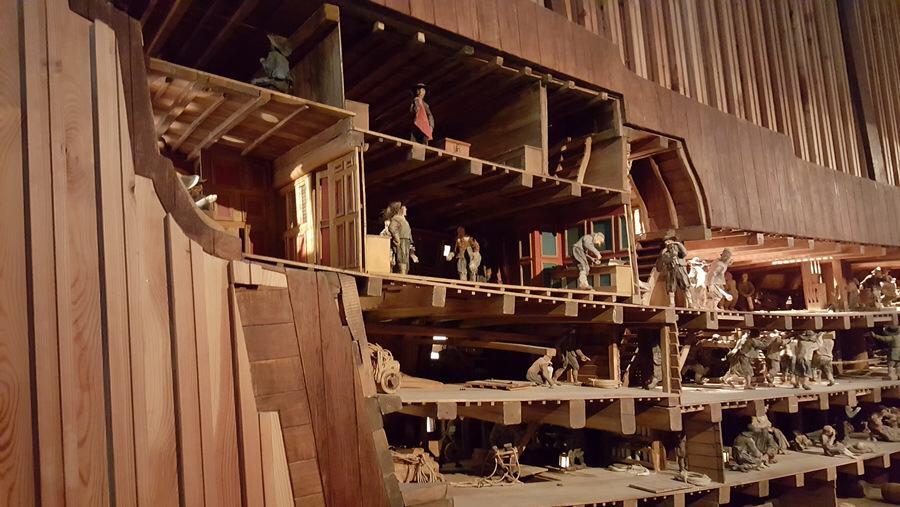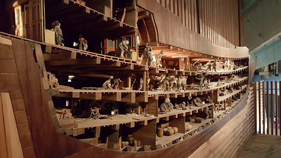 The recreation of the upper gun deck, steering position, and especially the Great Cabin (senior officers quarters & stateroom) makes it clear just how cramped life was on board. Ok, people were on average shorter in those days, but we know from the skeletons found on board (more later) that many of the crew were about my height, and I would have spent my time in the Great Cabin (see what I did there? Of course I would be in the Great Cabin! Where else?!) stooped over and banging my head every other moment. The intricate cutaway models of the overall ship, show that it was cramped throughout.