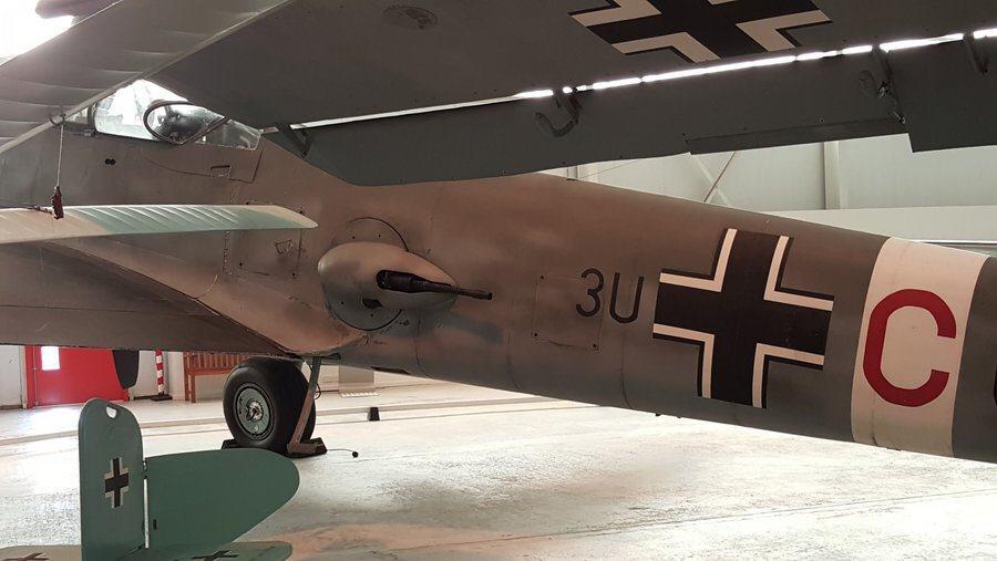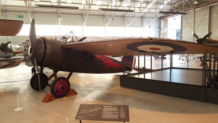 As you walk through, it starts off with a couple of WW1 aircraft – a Sopwith Pup, a Sopwith Strutter and a replica Bristol M1c monoplane, which I don’t think I’ve seen before – surprisingly elegant. And surprisingly quick (209 mph) but apparently unloved by pilots for its high landing speed, and restricted downward vision; they were used to being high above the lower wing of a biplane and set back from it. The problem was addressed by cutting holes in the wings! (See photos below)