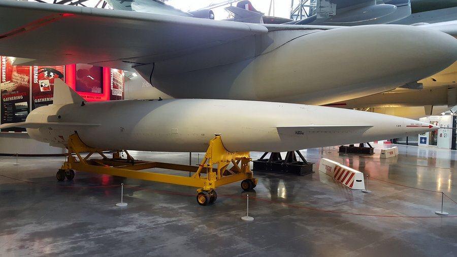 Rather more elegant, though just as dangerous (both had a yield of 1 megaton), is a Blue Steel stand off bomb, carried by the Valiant and the Vulcan bomber. Once released, its rocket would shoot it up to 70,000ft (21,330m) where it would cruise at supersonic speed to its target up to 104 miles (166 km) away.