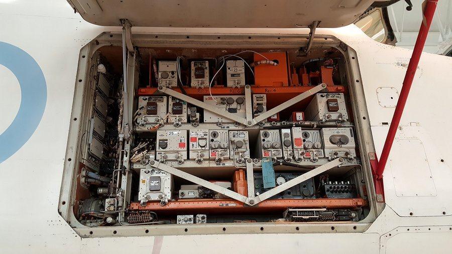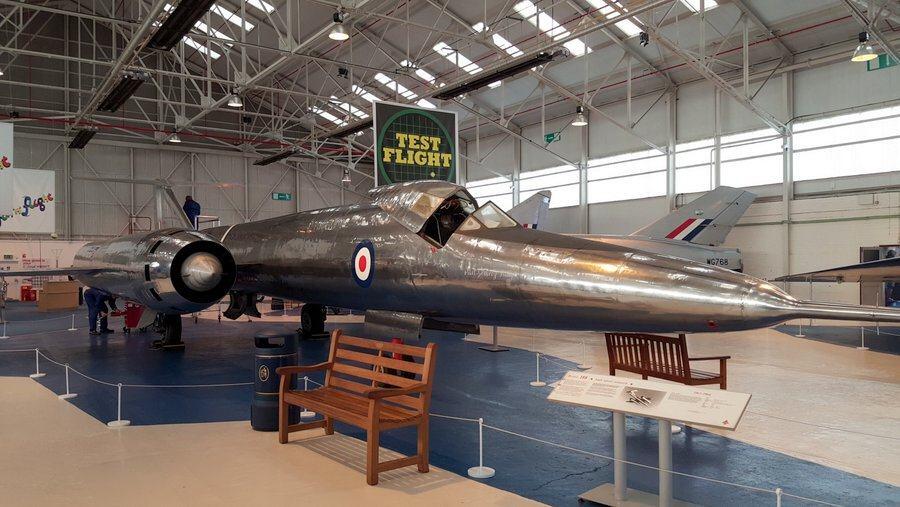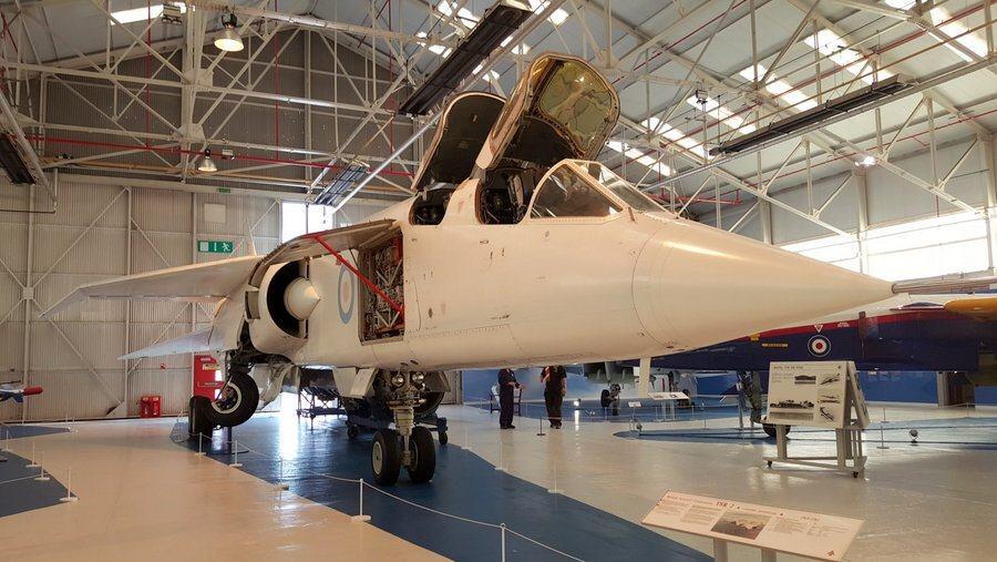 The legendary and larger-than-life TSR2 is here, dominating the hangar. There’s a TSR2 at IWM Duxford, but this one is displayed with an engine removed and its avionics hatches opened so you can see the clunky 1960s components.