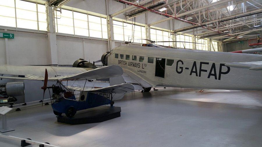 The highly successful three-engined Junkers Ju 52/3M passenger/military transport aeroplane first flew in April 1932, which is how, before WW2, it was in British Airways’ fleet! It certainly made me look twice when I stumbled across it! (And yes, that’s one of those Mignet Flying Fleas parked in front – See Yorkshire Air Museum’s)