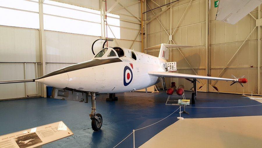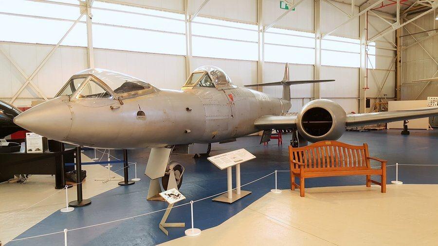 UPDATE (07/07/2024) The museum’s Gloster Meteor F8 Prone, built in 1952 for the RAF Institute of Aviation Medicine to test the advantages of a pilot lying prone instead of sitting up, was also on display in this hanger. It is currently on loan to the Newark Air Museum.
