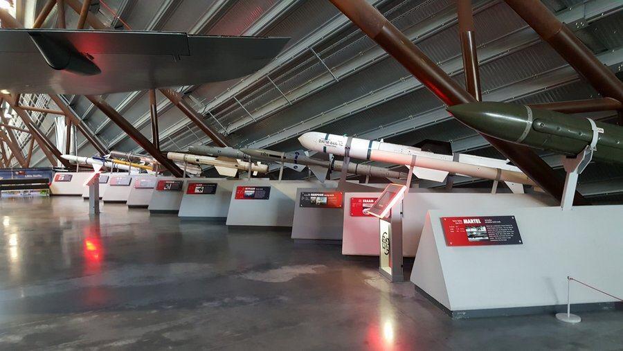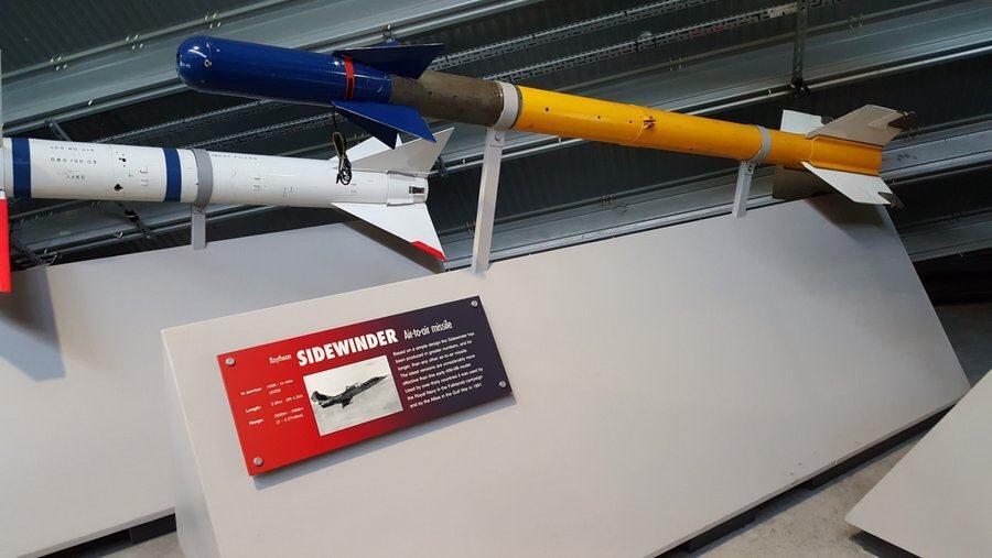 Less destructive but still lethal are the various missiles on ‘missile row’ (my name for it) – a line up of some of the more famous air-to-air and air-to-ground missiles of the Cold War era. Eg. The ALARM anti-radar missile (UK’s answer to the USA’s HARM), the Sidewinder & Sparrow air-to-air missiles, the Harpoon anti-ship missile and the Martel air-to-surface.