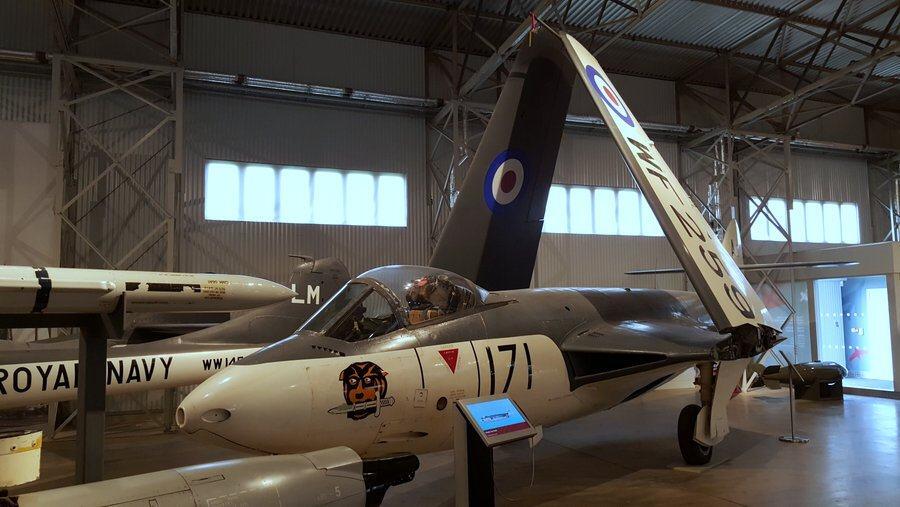 The Hawker Sea Hawk, a Fleet Air Arm fighter from the 1950s when the UK still had proper aircraft carriers (don’t start me on what we have now!), is not rare – there’s one at Duxford, two at Yeovilton, one at Newark, etc – but it’s a really elegant jet fighter that meets my single role, fit-for-purpose design criteria, and I’m always happy to see one.