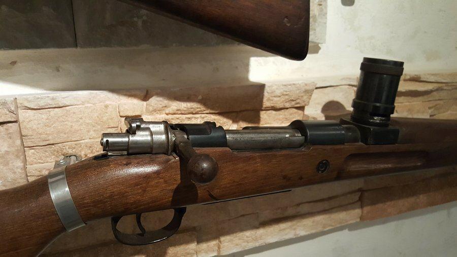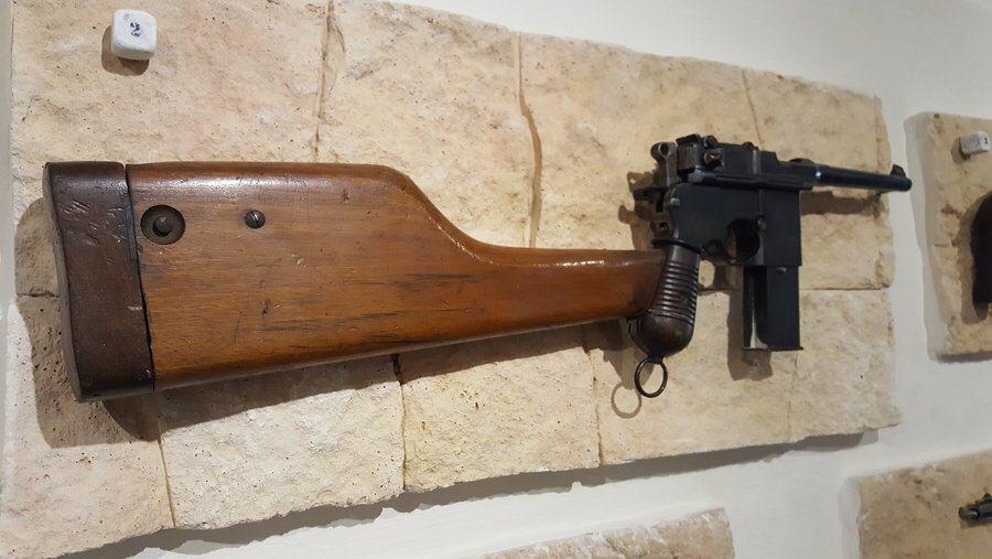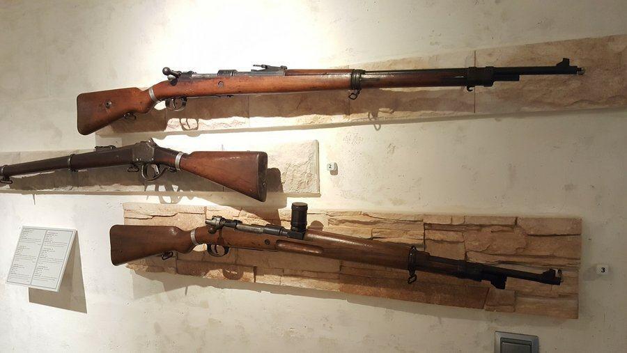 There’s also quite an interesting wall-mounted collection of small arms, including a license-made Spanish Mauser rifle with a test chamber for measuring the explosive power of the cartridges.