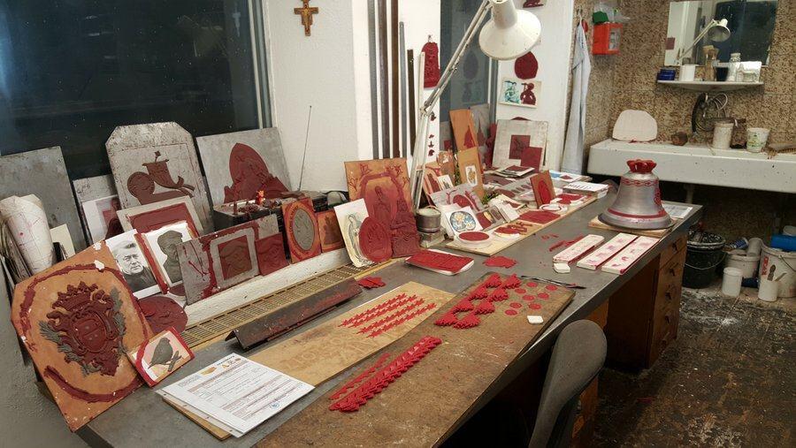 One part of the foundry that is normally ‘off-limits’ to tours is the wax workshop where the foundry artists craft detailed engravings for the bells. The work is too delicate to allow groups of tourists in there, but it’s a shame because it’s a real insight into the care & craft that goes into bell-making.