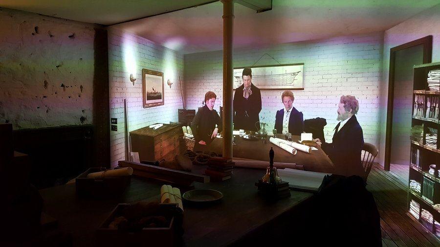 This cleverly breaks the visitors up into groups of about 20 who then enter the small rooms of the Dock Office where they are met by costumed actors who explain the significance of the rooms and the events and people who worked there.