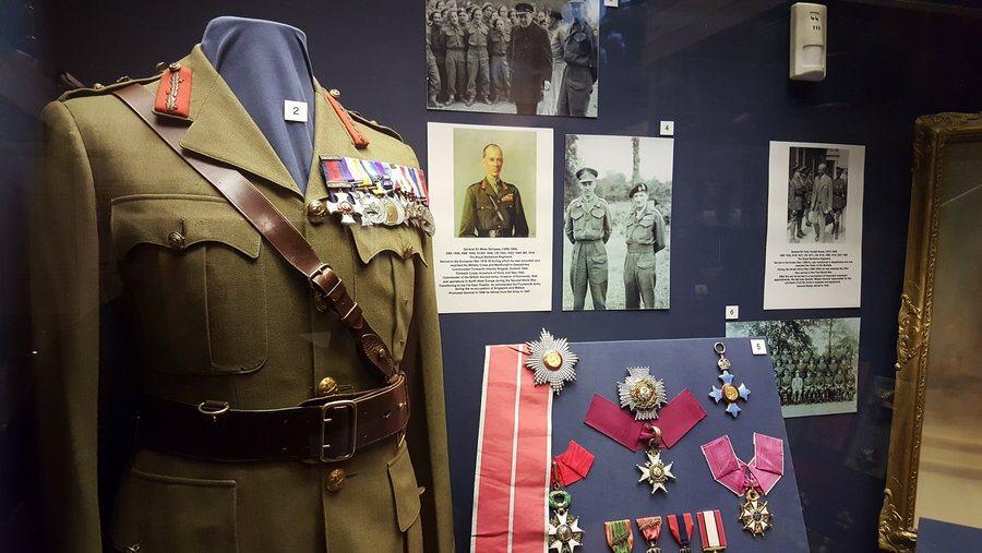 The room also has the uniform of General Sir Miles Dempsey (Royal Berkshire Regiment) who won the Military Cross in the First World War, and then, in the Second World War, went on to command the 13th Infantry Brigade at Dunkirk, the 13 Corps invasions at Sicily and Italy, and the Second British Army at Normandy and into Germany, before moving to the Far East where he commanded the 14th Army during the re-occupation of Singapore and Malaya. Quite a soldier!