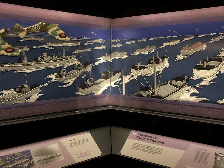 The final section on Legacy is given over to the extraordinary Overlord Embroidery. Think Bayeux Tapestry but in multi-coloured applique panels stitched over five years by members of the Royal School of Needlework. Commissioned by Lord Dulverton of Batsford, it’s stunning in its vibrancy and detail, and measures 83 metres in length.