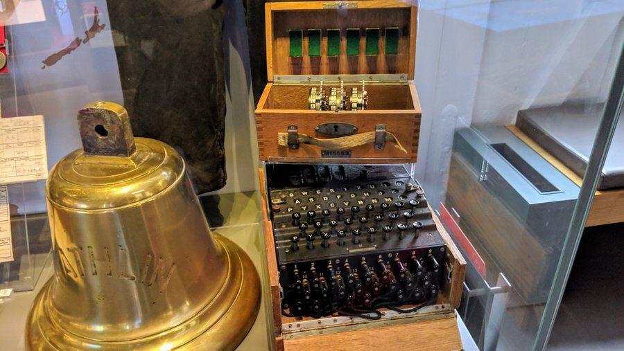 And also look out for the German Enigma coding machine. Yes, I know. It’s not unusual to see Enigma machines, but this one is rare. It’s an M4 machine, donated to the NMRN by the Royal Navy Signals School at HMS Mercury in 1983 (together with its spare rotors found almost 30 years later), but it doesn’t have a reflector (that sends the signal back through the scrambling system) so it has an adapted rotor. I thought M4 machines were only used by the U-boat arm, so I can’t see that it has a rotor to spare, but hey, what do I know!