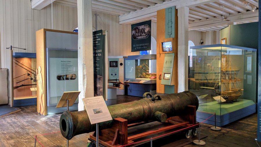 “For example the HMS Victory 42-pounder cannon on display in The Sailing Navy gallery. No, not that HMS Victory, her predecessor, launched in 1837 and lost with all 1,100 hands in the English Channel in 1744, 21 years before Nelson’s flagship was launched. The wreck of Victory 1737 was only discovered recently and this cannon, which the museum has had since last Sept is one of two brought to the surface. ”