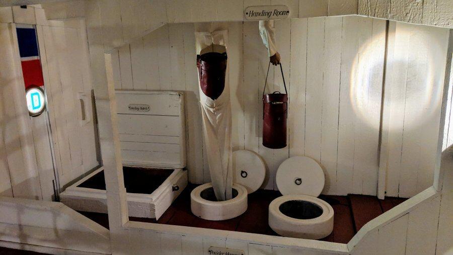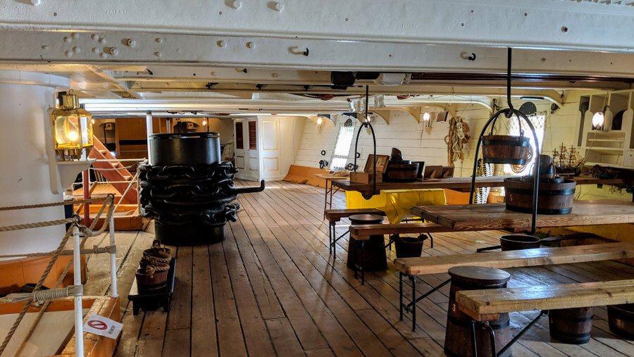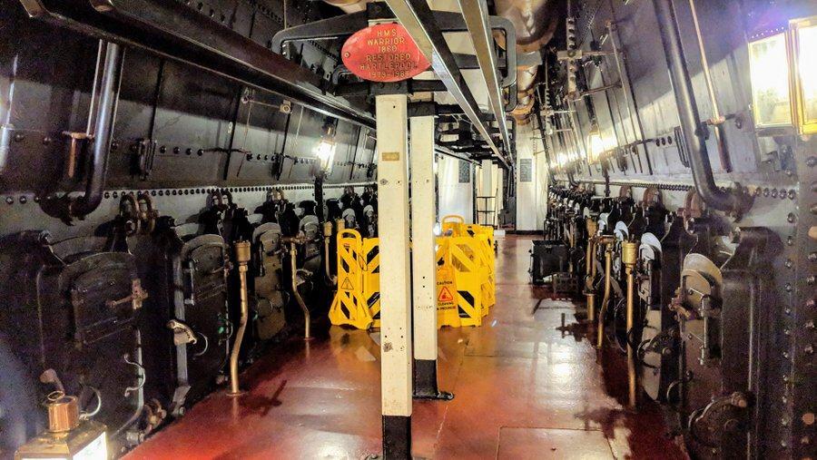 It also allows for better living conditions for the ordinary seamen, who didn’t have to spend half their lives crouching in small spaces. On the other hand, working in the engine room and boiler room would have been extremely noisy, dangerous and hot. The boiler men were working in temperatures around 43°C (110°F) shifting tons of dirty black coal into the furnaces for the boilers. No wonder HMS Warrior was the first warship to be equipped with (hand powered) washing machines!