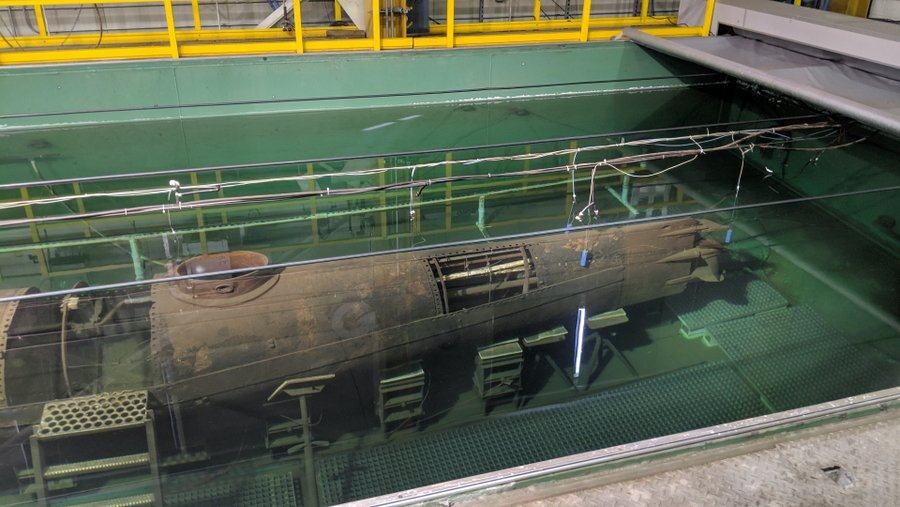 For one thing, when they opened her, by removing the first plate, they found she was completely full of sand and silt, which had partially solidified. They first tried to x-ray her to try & find where any bodies might be, but the combination of iron, sand & silt defeated them. So they began to slowly excavate from the top down, expecting to find the bones mingled together under the two conning towers, which were the only escape route. They were astonished to find the crew, sitting in their assigned places and with no evidence of injury. The keel blocks were not released, and the pumps were not set to drain outboard.