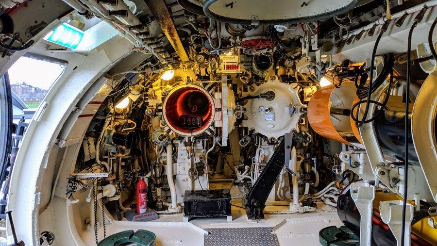 Over the years, she had begun to suffer from the elements and by 2011, with parts of her exterior rusting away she was badly in need of some TLC. A £7m repair and restoration project, supported by the Heritage Lottery Fund (£3.4m) and completed in 2014, patched her up externally, added improved access and lighting, and included a new soundscape designed by Sarah Angliss¹ to recreate the sounds of a working A-class submarine. This is her video walkthrough, highlighting those effects…