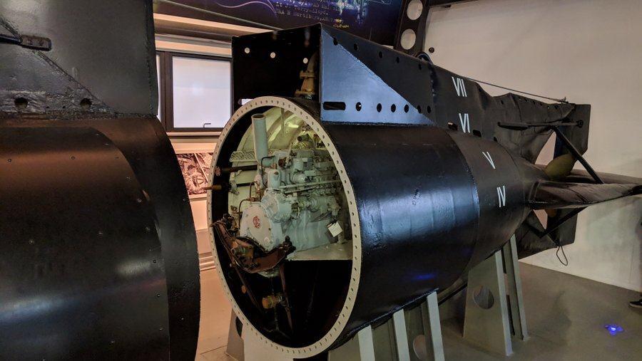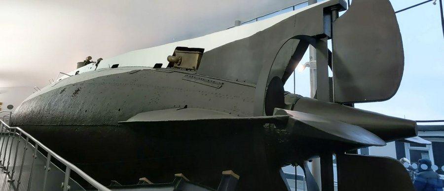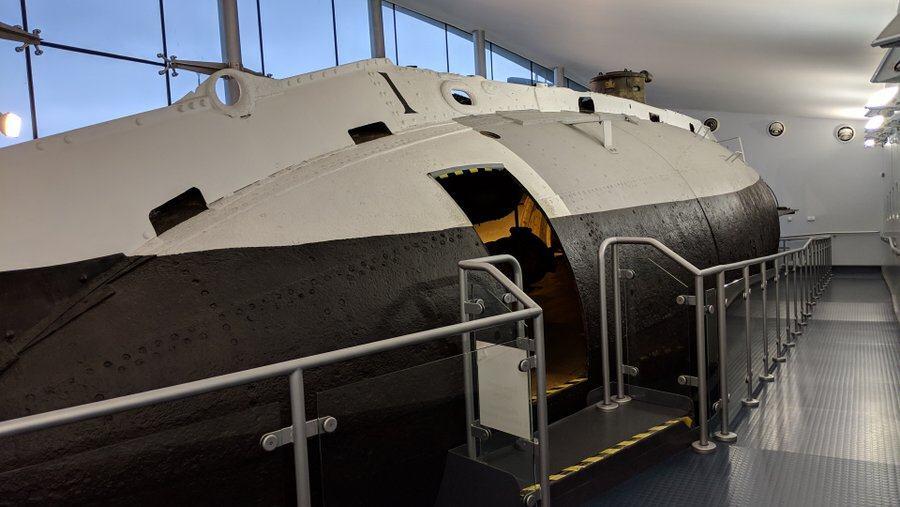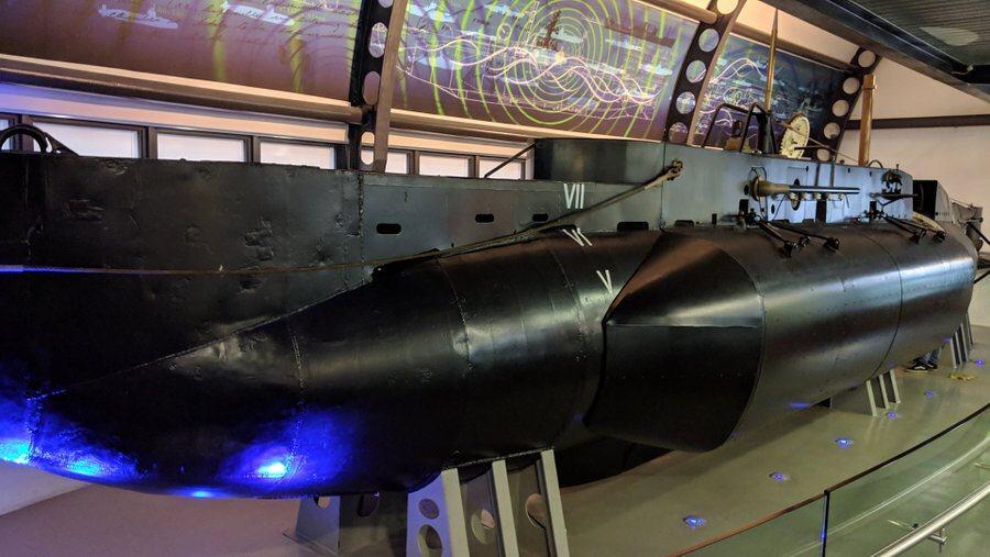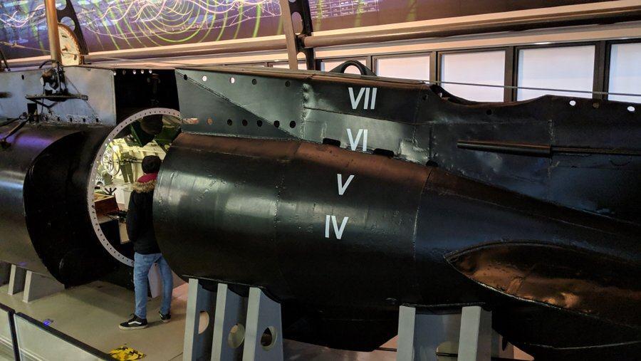 There’s a more interesting submarine, slightly shorter and a lot thinner than the Holland 1, on the lower ground floor of the main museum.