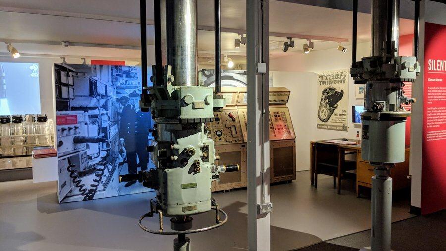 X-24 shares the ground floor entrance area with the Museum’s ticket desk, shop, cafe… and a Polaris Missile! Wherever you see them (RAF Duxford, RAF Cosford, Imperial War Museum in London) there’s something impressively sinister about them! On the mezzanine above, there’s a really rather good ‘hands-on’ section with lots of gadgets and displays explaining the science and workings of submarines. Good for families.