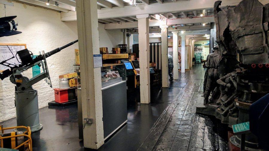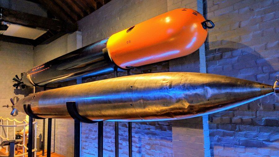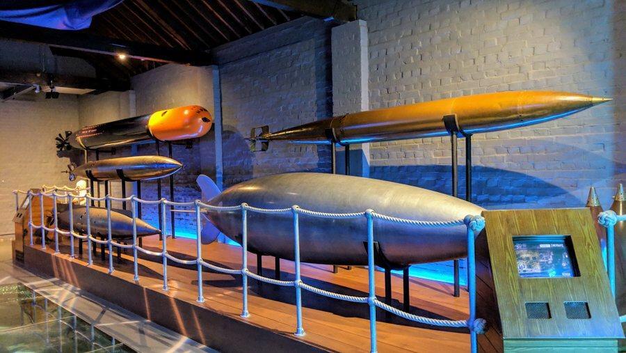 The torpedo gallery** has an impressive collection of historic and modern torpedoes with interactive signage on display panels. Look out for the famous Whitehead torpedoes, the world’s first self-propelled torpedo. There’s a Mark 1a made around 1872 for the Royal Navy at the Woolwich arsenal, and above it, a later version. The mighty 21″ modern torpedoes in the gallery are pretty awesome weapons, but so is the small 12″ Sting Ray air-dropped acoustic homing torpedo with its shaped charge designed to break through the thick pressure hull of a submarine.