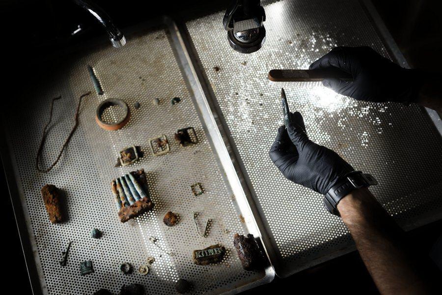 Nearby is a room displaying the work of the recovery/re-burial and forensic teams. The team in France still help local authorities recovering newly revealed dead from the battlefields on an almost weekly basis. The exhibition features artifacts found with bodies that provide clues to the identity, and there’s an excellent video tracing the process from the recovery of the body to the final reburial with full military honours. It demonstrates how the team use historical, archaeological and forensic evidence to identify the casualty, combining military historical research with DNA and genealogical tracing.