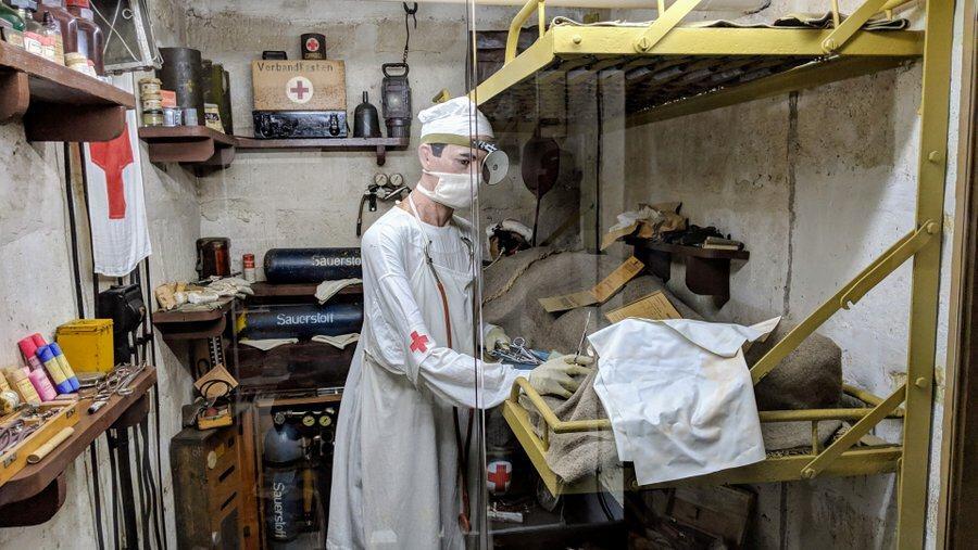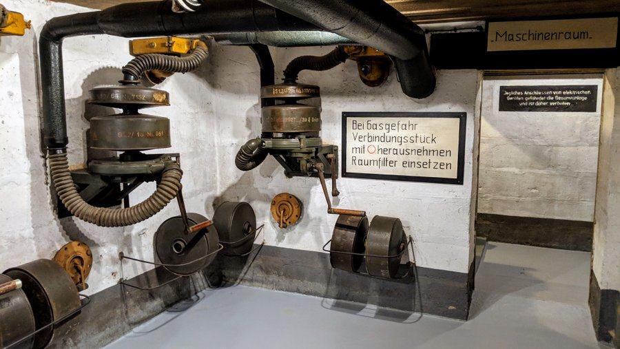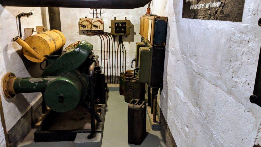 The 5-floors of the bunker have been restored to their June 1944 condition, with dioramas illustrating their purpose. So, in the basement, in addition to the defensive positions, there is the generator room and the ventilation room.
