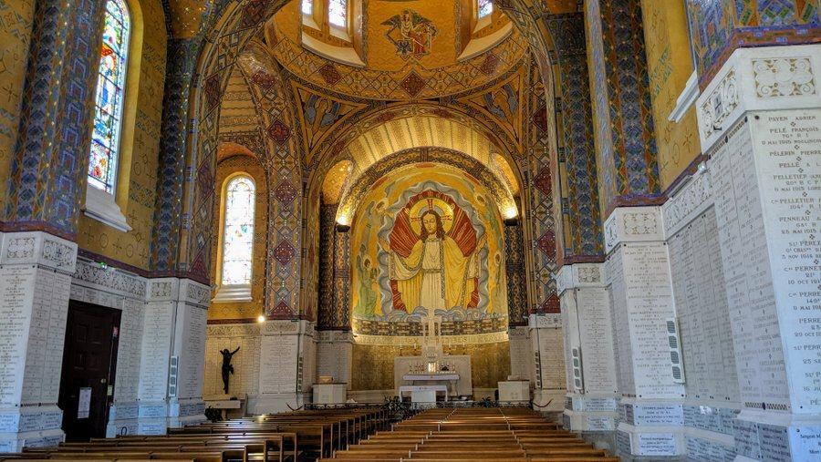 The Basilica and the Lantern Tower were designed by architect Louis-Marie Cordonnier. Work began on them in 1920. The Basilica is a large and ornate church building with 19 large stained glass windows, that can be used for services. It takes the role of the former chapel of Notre-Dame-de-Lorette, which sat closer to the southern edge of the plateau (near the Ring of Remembrance), but was destroyed in the war.