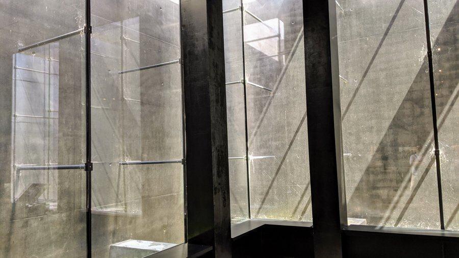 The building itself is something of an artwork. Designed by Pierre-Louis Faloci, the dark grey slab sides of the building are both dramatic and innovative. From the outside it looks like a near-black, windowless mausoleum, but many of the slabs are offset allowing just the right amount of natural light to come into the building through floor-to-ceiling windows behind.