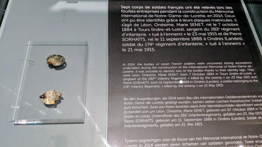 This site was such a fierce battleground in 1915 it’s hardly surprising that as they started to build the ring, they immediately uncovered two more French infantrymen: Pierre Sorhaïts & Léon Senet, identified from their tags. They now have their own plaque below the Ring where they were discovered, and their names tags are on display in the…