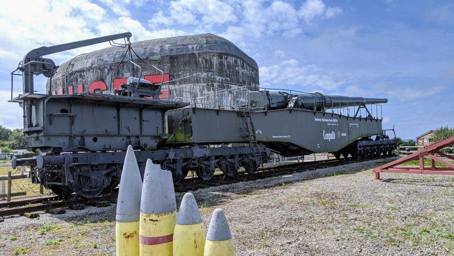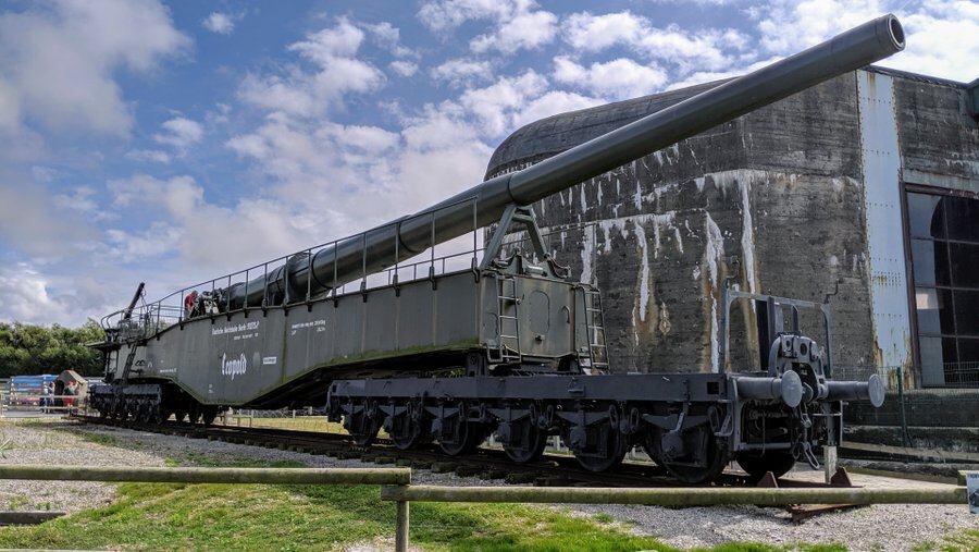 Not only was the giant concrete casement built specifically to accommodate a massive gun, it now has one of the two remaining German K5 railway guns parked alongside as a major exhibit.