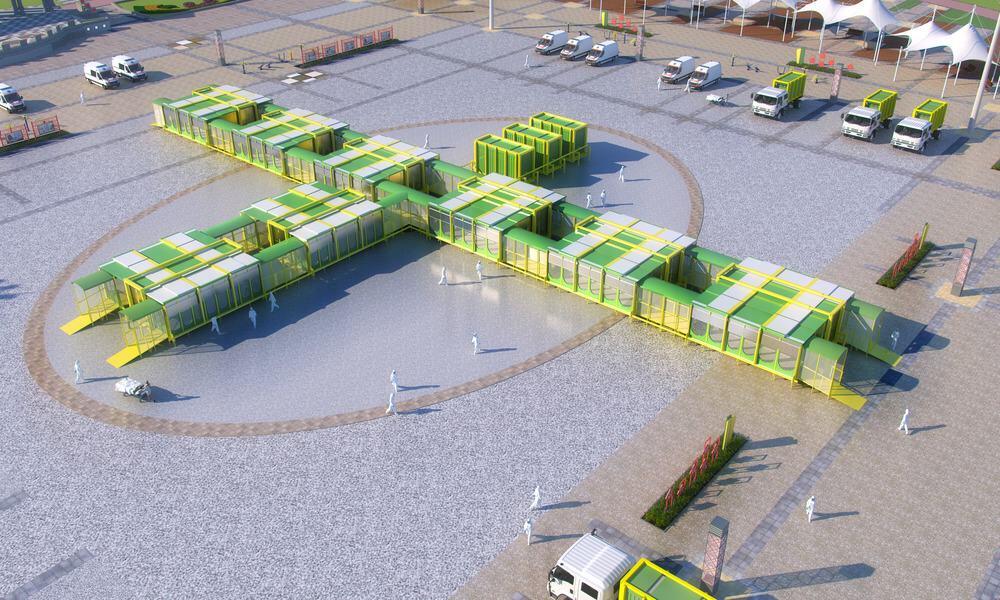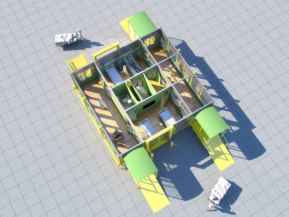 Unpredictable outbreaks of highly infectious viruses like SARS, MERS, & COVID-19 mean there is a need for temporary medical buildings, and the modular nature of this design means that epidemic prevention and rescue hospitals can be quickly assembled (and disassembled) to match the need and scale of the outbreak.
