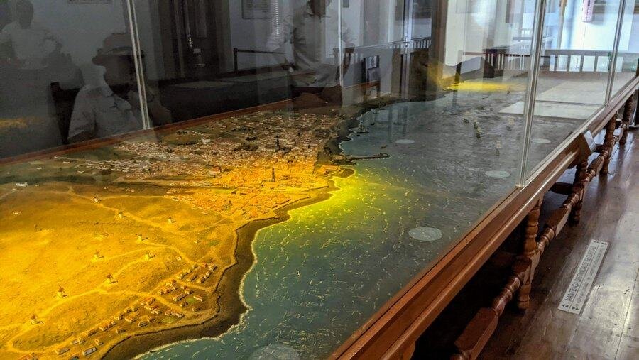 The museum covers military history in the Canaries up to the 21st century (there are helicopters, tanks, etc), but it also has a section covering the Battle of Santa Cruz de Tenerife including a large model of the battleground which provides a 6 minute animated presentation explaining, in English, what happened and where. If you start with that, you’ll have a good idea of what happened on the ground, before you explore the city.
