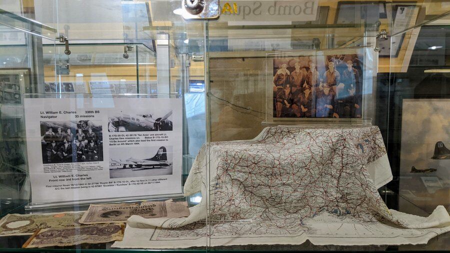 This is the room with all the main artifacts of the museum and many photos and stories. They cover some of the BG’s significant missions, escape and evasion (64 downed aircrew evaded capture and escaped home or to neutral countries), models, uniforms and other memorabilia. Many exhibits have been donated by 95th BG veterans and their families, and more continues to arrive at the museum. They could do with more space!