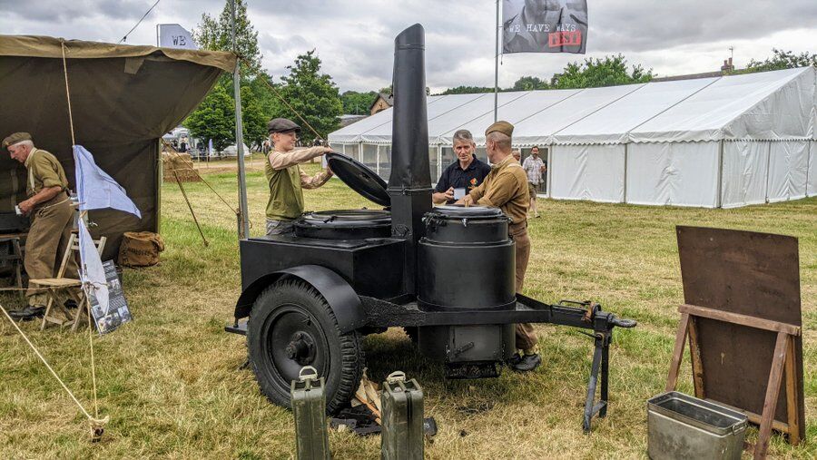 I’ve been interested in field kitchens since I first saw a German “Gulaschkanone“ in the tank museum at Saumur. The guys operating this 1933 model, Belgian field kitchen were making Pasta Bolognese for hungry visitors.