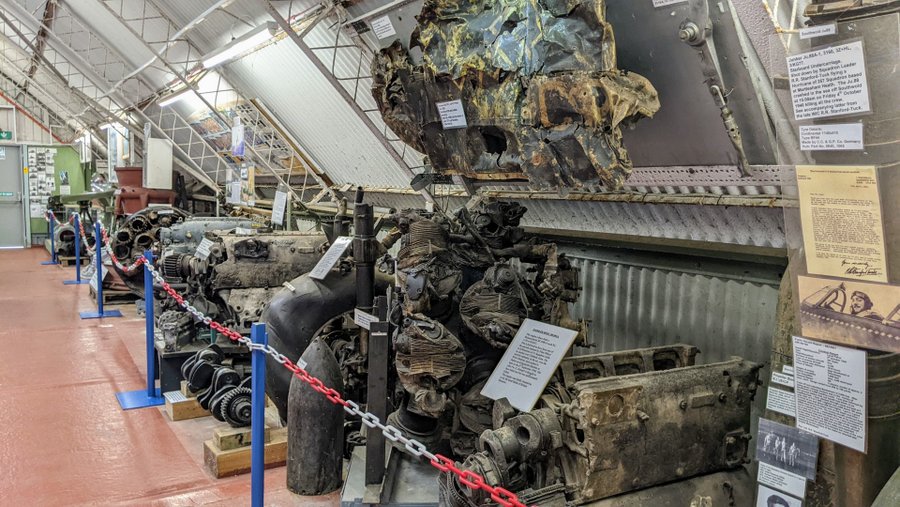On the other side of Hanger 1, there’s a large collection of local Luftwaffe “wreckology”; pieces of crashed aircraft found & dug up by aviation archaeologists. There are a number of engines, including one from a Messerschmitt 410 and one from a V2 rocket. There’s also a piece of undercarriage, the starboard leg, from a Junkers 88 shot down near Southwold by a famous ace, Wing Commander R.R. Stanford-Tuck who was based at RAF Martlesham Heath. It is accompanied by a fascinating letter from Stanford-Tuck detailing the encounter.