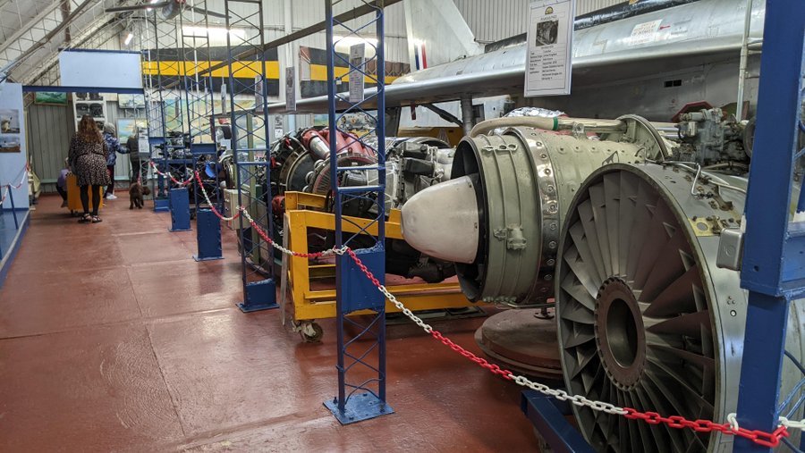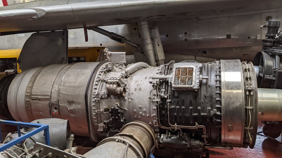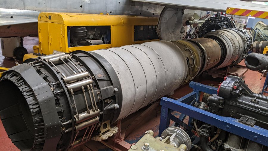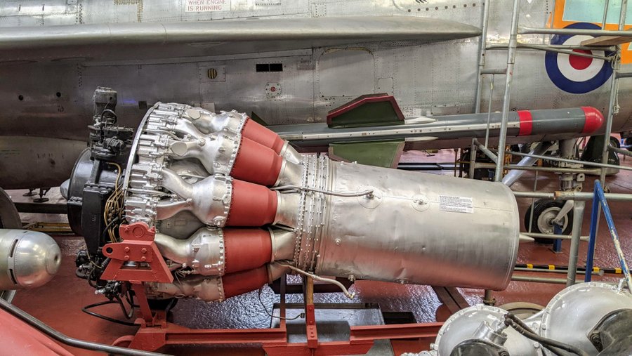 Laid out alongside the Lightning is a history lesson in jet engine technology – a series of British jet engines from the WW2 era into the 1950s. It’s amazing to think that engines like the De Havilland Goblin turbojet, which powered the De Havilland Vampire jet were first run up in 1942. Its successor, the Ghost, first ran in 1945 and powered De Havilland’s Comet and Venom aircraft. The Rolls Royce Derwent engine, which was the predecessor of Rolls Royce’s Trent & Neme engines, was first run in 1943. And the Rolls Royce Avon jet engine, that powered the De Havilland Sea Vixen (outside), the English Electric Canberra (outside) and Lightning (behind), the Hawker Hunter (outside), the Saab 32 Lanson & 35 Draaken, and the Vickers Valiant… was first run in 1947!