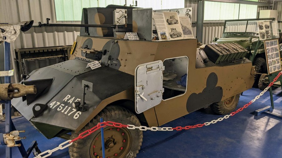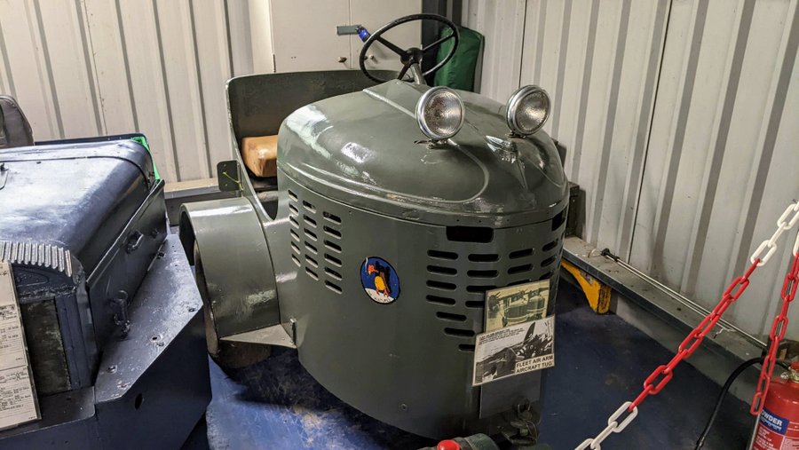 And some vehicles you don’t see often: A Clarkat B heavy aircraft tug (tractor) of the type used by the Fleet Air Arm during the Korean War, a 1954 Austin Champ, and a Morris MK1 Light Reconnaissance Car of the type used by the RAF Regiment.
