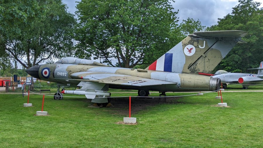Next to the Harrier is an English Electric Lightning DB, the staggeringly quick but staggeringly fuel thirsty, Cold War supersonic, all-weather interceptor. This particular one, bought by a N&SAM member, was one of two pre-production models built in 1959 and used for trials, such as testing its guns in supersonic flight.