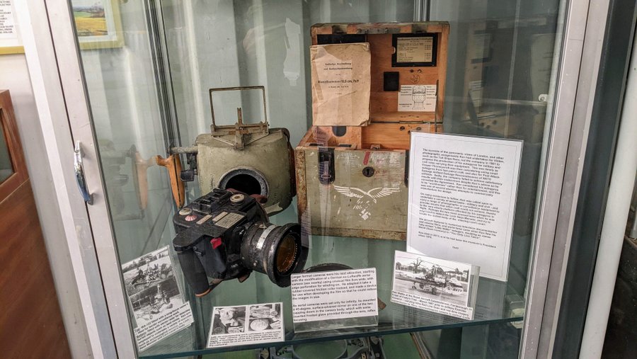 Wallis had two particular enthusiasms: autogyros and aerial photography. Or rather the other way around. He caught the bug for aerial photography while serving as a Wellington bomber pilot in WW2. He started building his own cameras. Later, he started developing autogyros as a stable platform for his aerial photography. He made a living out of his aerial photography for both military and civil contractors. His more unusual contracts included hunting for ‘Nessie’ in Loch Ness, and trying to spot Lord Lucan’s buried body. He died in 2013. Amazing guy! Some autogyros and part of his collection of cameras is on display in the hall.