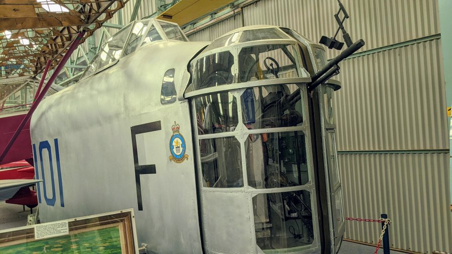 It’s a large hanger with some interesting aircraft and artefacts including a Westland Whirlwind & Bristol Sycamore helicopters, an Avro Anson, part of a WWI Felixstowe F5 flying boat built in 1918, and a really interesting replica of the nose of a Boulton & Paul Overstrand with the world’s first power-operated gun turret.