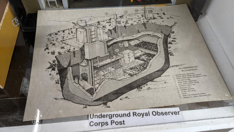 The Royal Observer Corps (ROC) hut has some interesting artefacts, photos and models from WW2 and later, including the details of over 1,500 secret underground bunkers in the UK set up from 1955 to monitor nuclear fallout after a nuclear attack.
