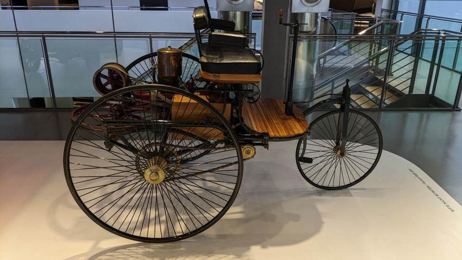 It’s roughly chronological and it starts at the top with a replica of Carl Benz’s 1888 Patent Motorwagen (the one his wife, Bertha, famously ‘borrowed’ to go visit her mum in Pforzheim, 106 kms away).