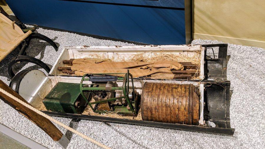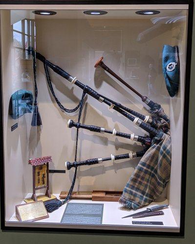 The interior is one large open space with displays gathered around the cinema in the centre. There are some really interesting photographs, plenty of uniforms, weapons and equipment. There’s a display showing how larger vehicles, such as tanks, could be carried in the Horsa’s bigger brother, the Hamilcar glider, and there’s a set of Bill Millin’s bagpipes!***