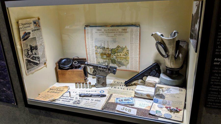 The museum is in a modern building housing a small circular cinema and many artefacts from the airborne & ground forces. Outside in the grounds are some of their vehicles and weapons. So, while the focus is very much on the actions of the 6th Airborne, it is not exclusive; there is for example a display of items used by the French Resistance in the area.