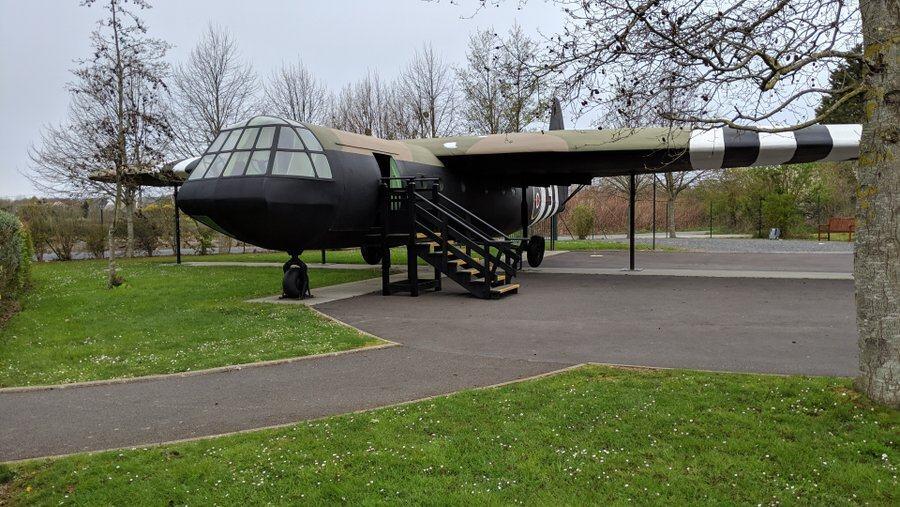 So, in 2002 the museum commissioned a group of French aeronautical enthusiasts to build a full sized replica in the museum grounds, based on plans supplied by the De Haviland Association, and with help from the Army Air Corps museum in Middle Wallop and the Airborne Forces Museum at Aldershot in the UK. The replica has been painted in the colours and registration of the first Horsa to land at Pegasus bridge.