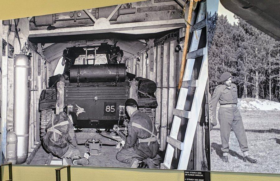In a nearby hut there is more information about Bailey bridging. In ideal conditions, a short single span bridge could be built by a team 40 Royal Engineers in 3-4 hours. The genius of its design was in the modular structure. A single section can span a gap of up to 240 ft. So using the pre-existing supports of a bridge that has been destroyed, or floating pontoons, the bridge can cover almost any distance. If if gets damaged, you can just swap out the damaged section. Bailey bridging is much more interesting than I thought.